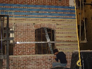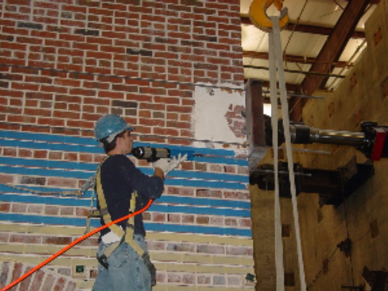 A full-scale two-story unreinforced masonry (URM) building was tested in a quasistatic fashion at Georgia Tech, to investigate the nonlinear properties of existing URM structures and to assess the efficiency of several common retrofit techniques. Master Contractors LLC was selected to perform the strengthening of the structure.