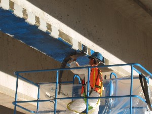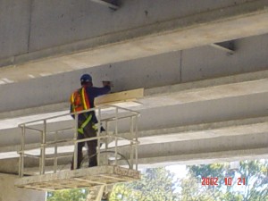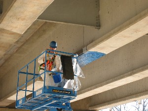 The use of fiber reinforced polymer (FRP) composites to restore the original capacity of impacted prestressed and reinforced concrete (PC and RC) girders is highly effective. In many instances, FRP strengthening represents the only practical and costefficient solution to such problems. The ease and rapid installation of the external FRP reinforcement without traffic interruption is often the key parameter for the use of this technology. In this project, the flexural strengthening of one accidentally-damaged precast PC girder of a bridge over the Gasconade River, Missouri was performed. The impact resulted in the spalling of concrete and severing of two out of 38 prestressing tendons. The location of the damage was near the mid-span of the girder. The design was based on restoring the ultimate flexural capacity of the member. This was accomplished with the installation of properly anchored carbon FRP laminates (3 plies) using manual lay-up.