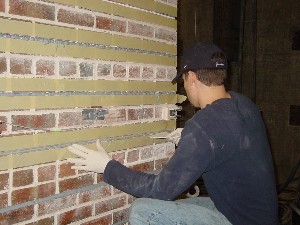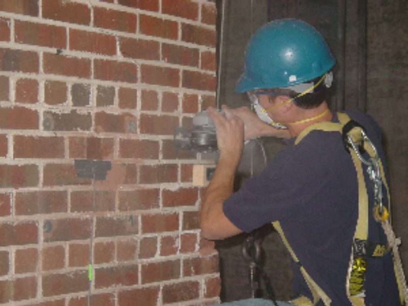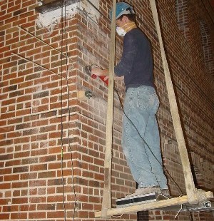 A full-scale two-story unreinforced masonry (URM) building was tested in a quasistatic fashion at Georgia Tech, to investigate the nonlinear properties of existing URM structures and to assess the efficiency of several common retrofit techniques. Master Contractors LLC was selected to perform the strengthening of the structure.