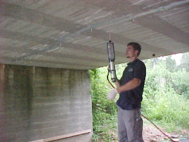 In this project externally bonded fiber reinforced polymers (FRP) laminates and Near Surface Mounted FRP bars were installed for the flexural strengthening of a concrete bridge. The bridge is a three-span simply supported reinforced concrete slab with no transverse steel reinforcement, load posted and located on Martin Spring Outer Road in Phelps County, MO. The original construction combined with the presence of very rigid parapets caused the formation of a wide longitudinal crack which resulted in the slab to behave as two separate elements. The FRP strengthening was designed to avoid further cracking and such that the transverse flexural capacity be higher than the cracking moment. Both FRP techniques were easily implemented and showed satisfactory performance.
